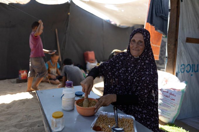 • Shadi receives meals from a WCK Community Kitchen. She adds additional spices and mashes the balila—refining the recipe to the way she prepared it at home before the conflict. “Balila is one of the delicious traditional dishes we love. We always miss it in the difficult circumstances we live in. It is cherished by both children and adults, and it gives us a sense of comfort and warmth.”