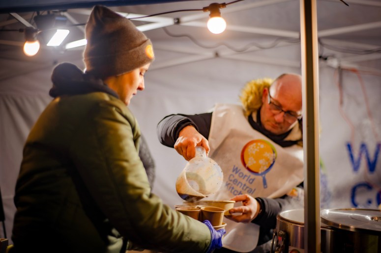 Immediately following the February 24 invasion of Ukraine, a majority of refugees fled to Poland, crossing the border at all hours of the night in freezing cold temperatures. Within hours, WCK’s Sam arrived in Medyka—a village on the Poland-Ukrainian border—to welcome families with hot, comforting meals. In less than a week, we set up meal distributions at all eight border crossings in Poland, eventually operating 24/7 with a focus on serving hot soups, tea, coffee, and hot cocoa.