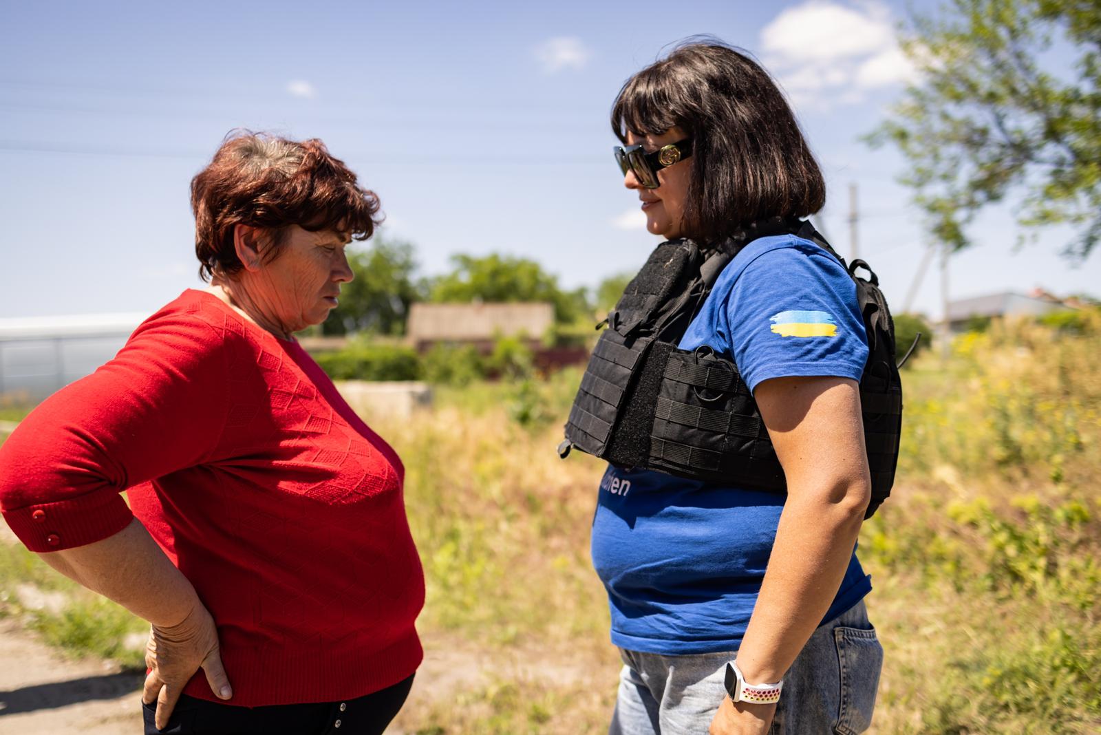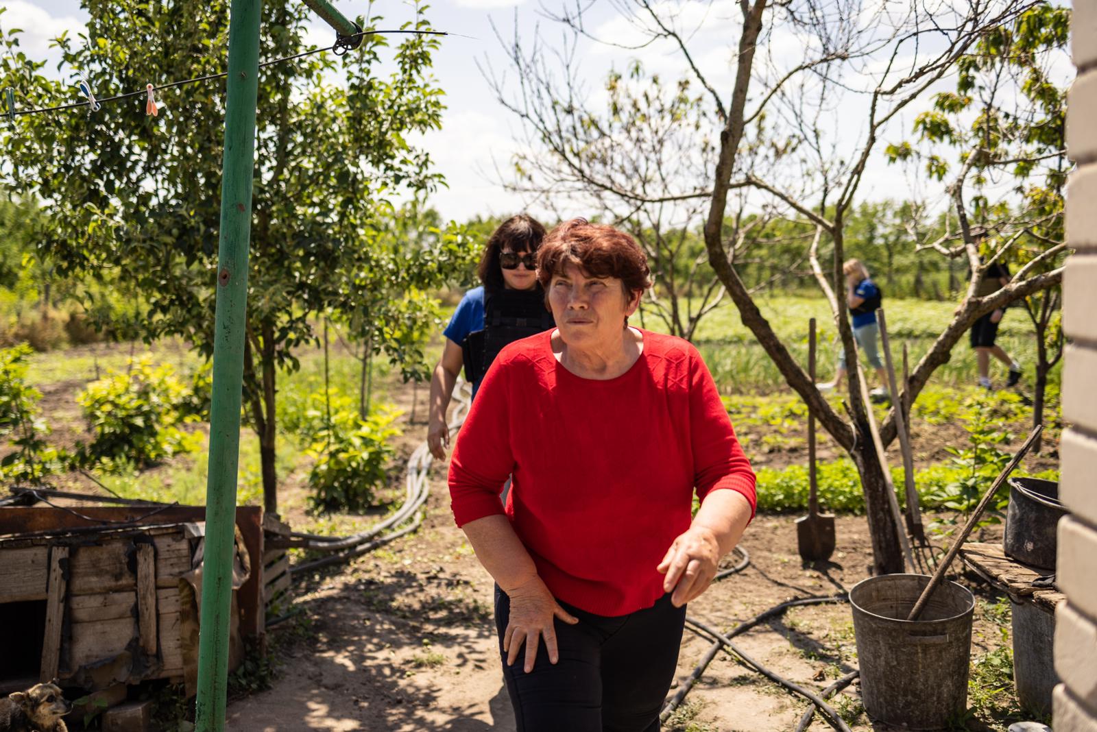 Lida shows her garden to Yuliia, WCK’s media and translation lead in Ukraine.