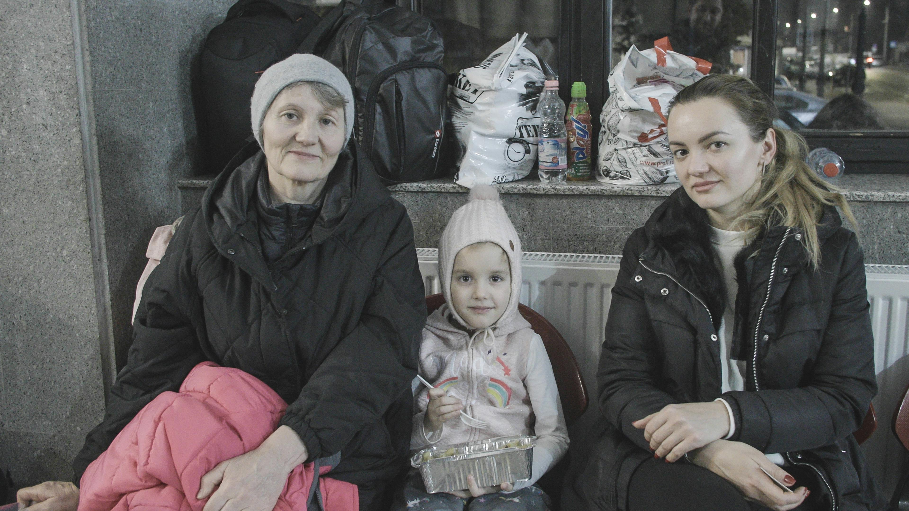 At the main train station in Suceava, Romania, our team met little Evelina. Evelina’s mother first heard bombings at 6am—she took both Evelina and her own mother into the basement of their apartment building, but there wasn’t enough space for them to stay there. They were able to find shelter at a local hospital, where they stayed safely in the basement for two days.