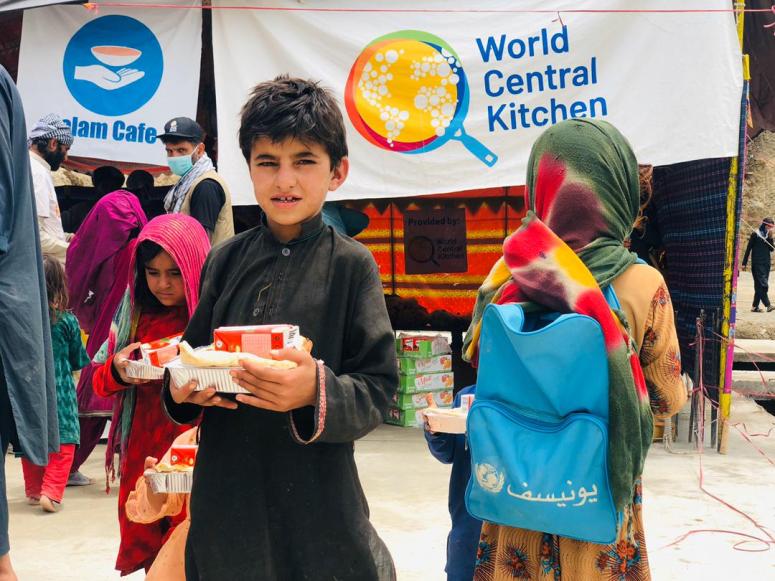 Located in Kabul and operated by WCK partner Instant Aid, Salam Cafe offers a safe space for children to eat, learn, and play. To date, the cafe has served thousands of meals and distributed clothing and books to vulnerable children. The cafe was activated as a WCK Relief Kitchen and within hours of the floods was preparing plates of lobia chalaw that were delivered to impacted communities in Logar Province.