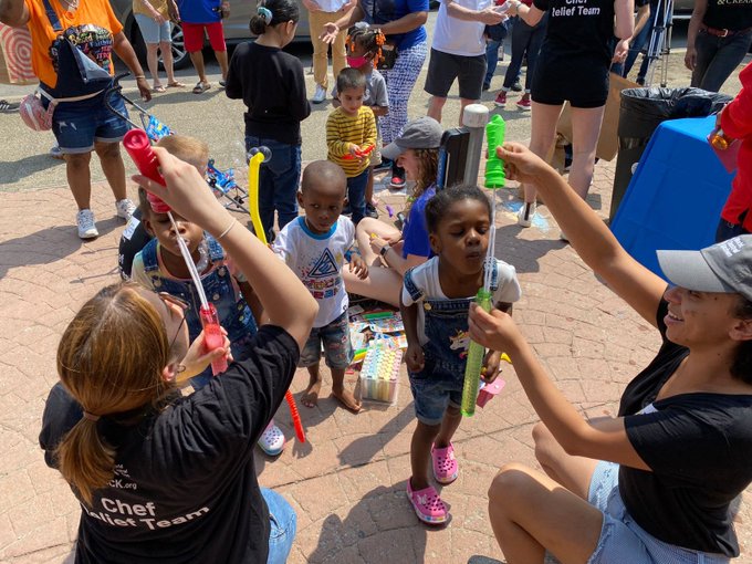 To provide extra comfort, our Relief Team brought bubbles and outdoor entertainment for children in Buffalo. In addition to serving food from favorite local restaurants, we also provided ice cream!