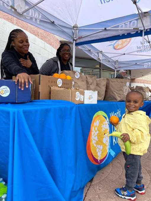 With no grocery stores close by, WCK jumped in to provide apples, oranges, greens, and more. Javon was very excited to see that we were serving fresh fruit alongside hot meals.