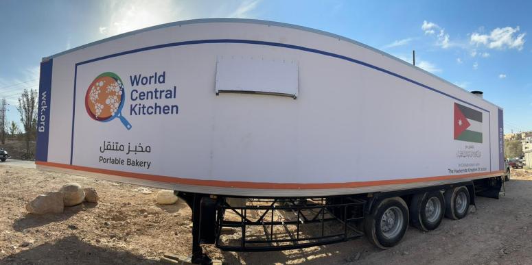 Introducing the newest member of the WCK fleet in Gaza! This powerhouse food truck can bake 3,000 loaves of pita bread per hour. The Kingdom of Jordan supported the building and transport of the truck, which could help make a big difference for the meals of the people it serves