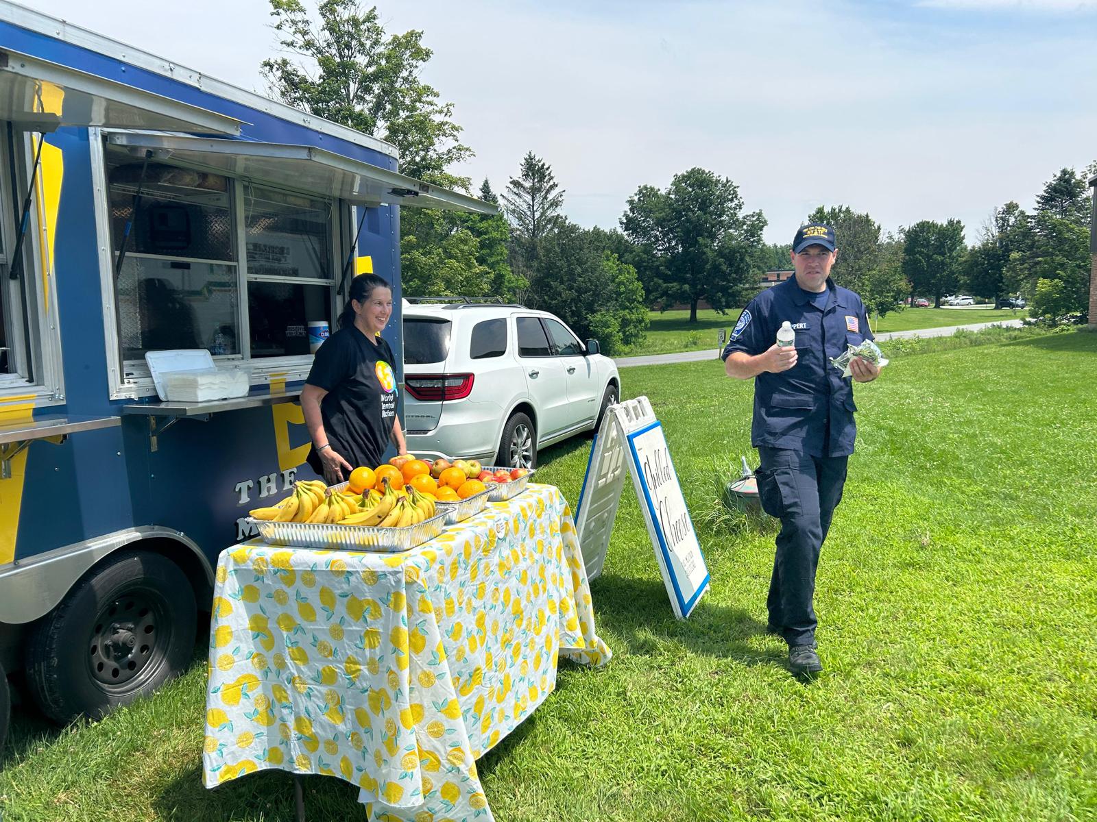 First responders worked tirelessly to clear mud and debris left behind by the flooding. Nick, pictured left with his son, is a BBQ enthusiast that drove his smoker to Berlin—just south of Montpelier—to prepare dinner for firefighters in the area. Nick provided delicious plates of pulled pork, pasta salad, and coleslaw!