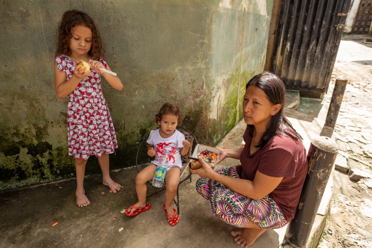 In the community of Beira-Rio in Recife, we met Amara who lives with her husband—a delivery worker—and three kids ages 2, 6, and 13. “I’ve only seen people affected by floods on TV, it had never happened to me before. My kids and I were rescued by the neighbors who used a water tank. We got inside it and were dragged to a safer place because we can’t swim”.