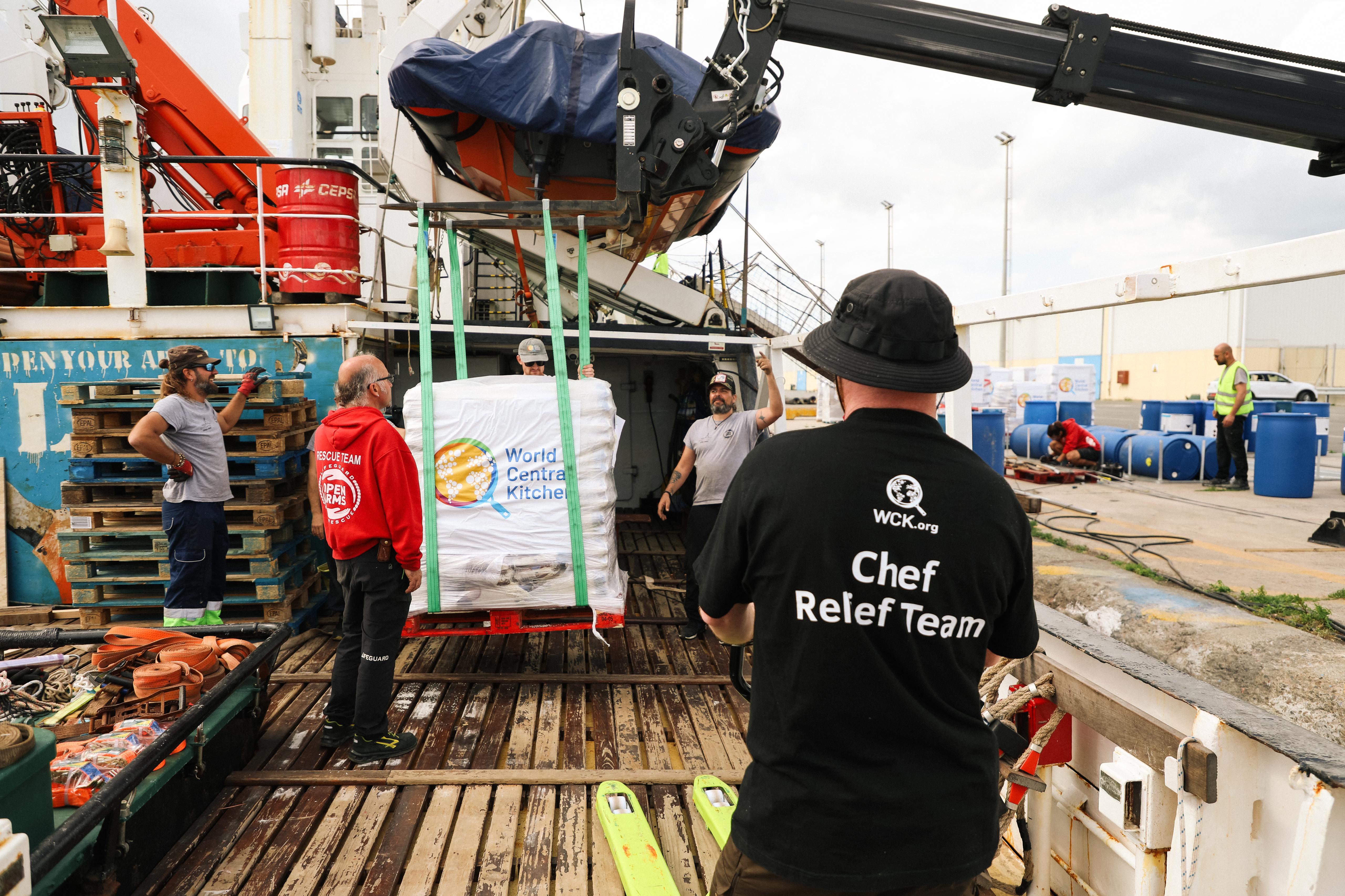 World Central Kitchen teams are in Cyprus loading pallets of humanitarian aid onto a boat headed to northern Gaza. We have been preparing for weeks alongside our trusted NGO partner Open Arms for the opening of a maritime aid corridor that would allow us to scale our efforts in the region. We are also working with the United Arab Emirates, Cyprus, and the international community in this initiative that will help ensure as many meals as possible reach Palestinian families facing starvation.