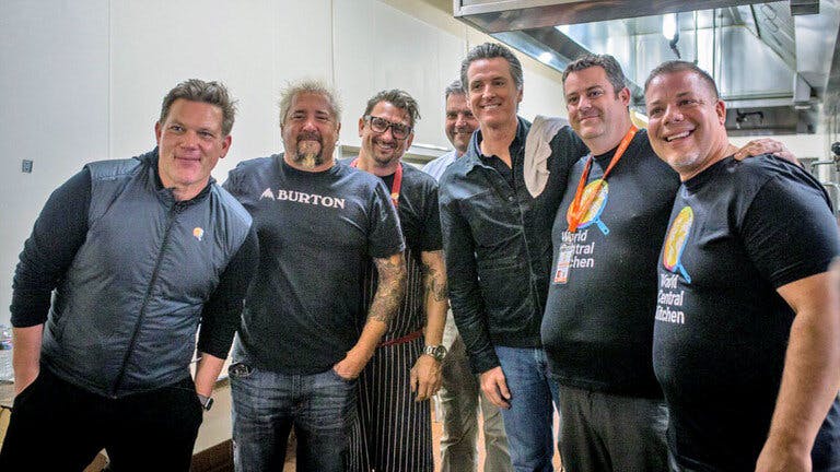 The Chef Relief Team was joined by a cast of superstar chefs from the area, including Tyler Florence, Chris Cosentino, Guy Fieri, Traci Des Jardins, Michael Mina, and David Nayfield. The meals they prepared – Roasted Local Pumpkin Curry, Teriyaki Fried Rice, Upside Down Shepherd’s Pie, and beyond – received rave reviews from the firefighters on the front lines and the people of Sonoma County, no strangers to good food. The kitchen also welcomed some visitors from Washington, DC and Sacramento, including Congressman Mike Thompson and California’s Governor Gavin Newsom.