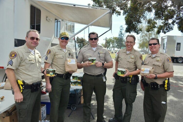 Chef West led the kitchen in Ventura, preparing favorites like beef stroganoff with nutmeg spiced mushrooms and grilled chicken tomatillo fajitas with fire roasted peppers over seasoned rice. The grilled chicken tomatillo fajitas were a hit at the Ventura County Sheriff’s Mobile Command Base!