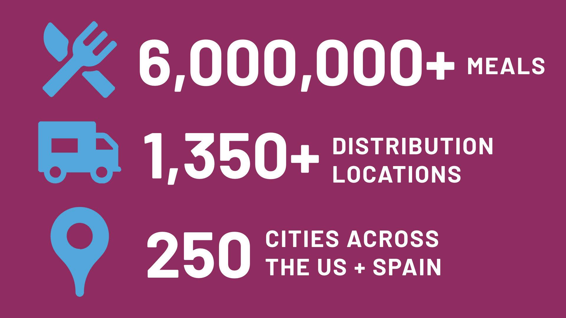 WCK’s COVID-19 response is the largest effort our team has ever undertaken. We are currently serving 300,000 meals every day across America and in Spain, and this is only possible because of incredible partners, local community heroes serving their neighbors, and all of your support. For this, we want to say thank you!