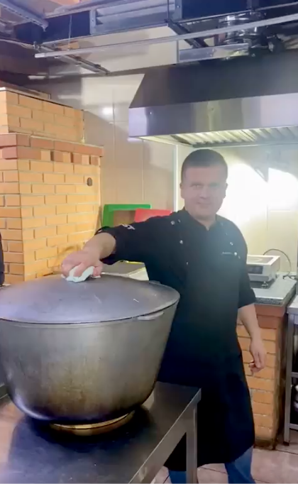 • This is Anatoly, a chef at The First restaurant in Odesa, Ukraine. Before the war, he was a top sushi master in the city! Now he cooks nourishing meals like this hearty beef stew with vegetables for those in need across the city. #ChefsForUkraine 🇺🇦