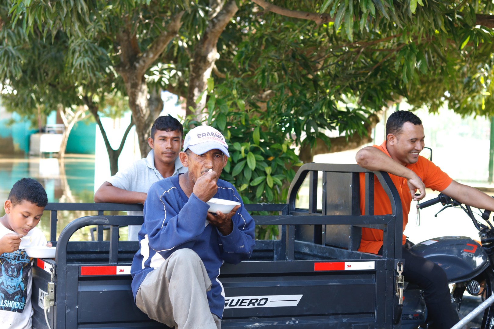 I am also deeply moved by the strength of community kitchens. We currently have more than 200 active, each serving between 30 and 100 people. Yesterday, we traveled to Las Palomas, a small town that lives from river sand extraction and was left isolated after the flooding. Together with local community leaders, we prepared a wood-fired sancocho for 300 people—made with pork, chicken, yam, cassava, and plantain.