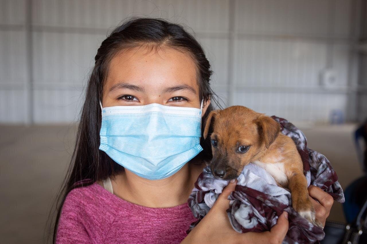 Emily and her puppy Aisha were evacuated from Kele Kele to the Air Force Base in San Pedro Sula. Hurricane Eta flooded their home so they had to go into the mountains to be rescued. Emily told us she wants to be a pilot, so she liked the experience of being in a helicopter.