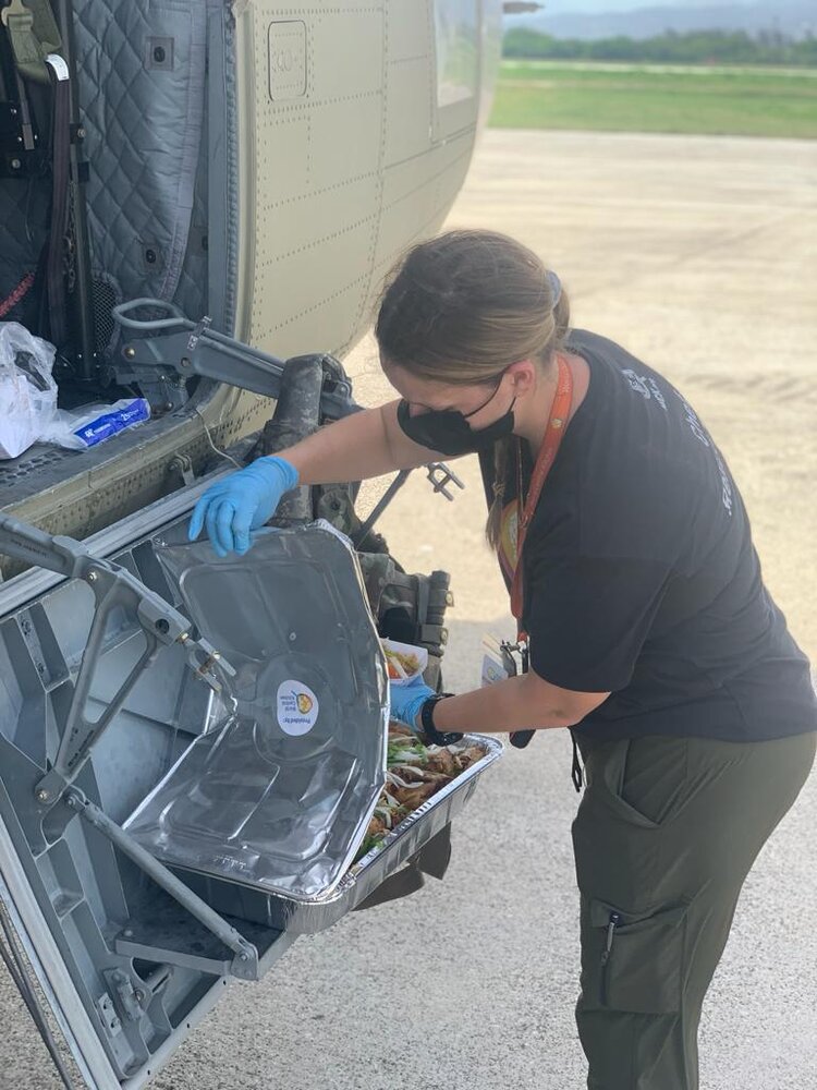 At the Port-au-Prince airfield, WCK’s Anna is helping to coordinating the movement of supplies, including food and water, and medical evacuations. In addition to getting our hot meals and fresh sandwiches on flights to impacted communities, our teams are providing lunch and dinner to first responders on site and working around the clock.
