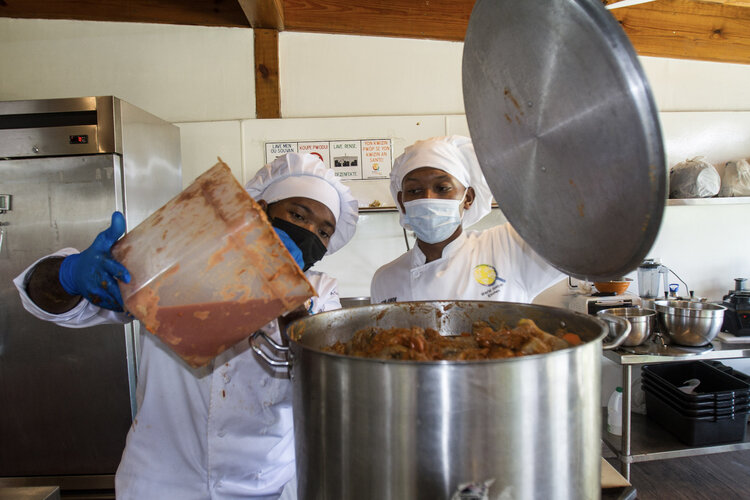 WCK’s long time partner Acceso, generously provided our culinary team with jars of local Haitian peanut butter. With it, students put together a delicious spicy peanut butter braised chicken stew over Haitian rice, garnished with fresh onion and peppers.