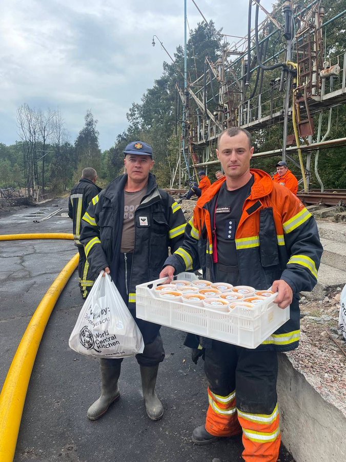 • Thursday, WCK responded to the site of a Russian strike on critical infrastructure in Zhytomyr, a city in northwest Ukraine. Our team served a comforting lunch of soup, sandwiches, apples, and water to emergency personnel battling a fire caused by the attack.