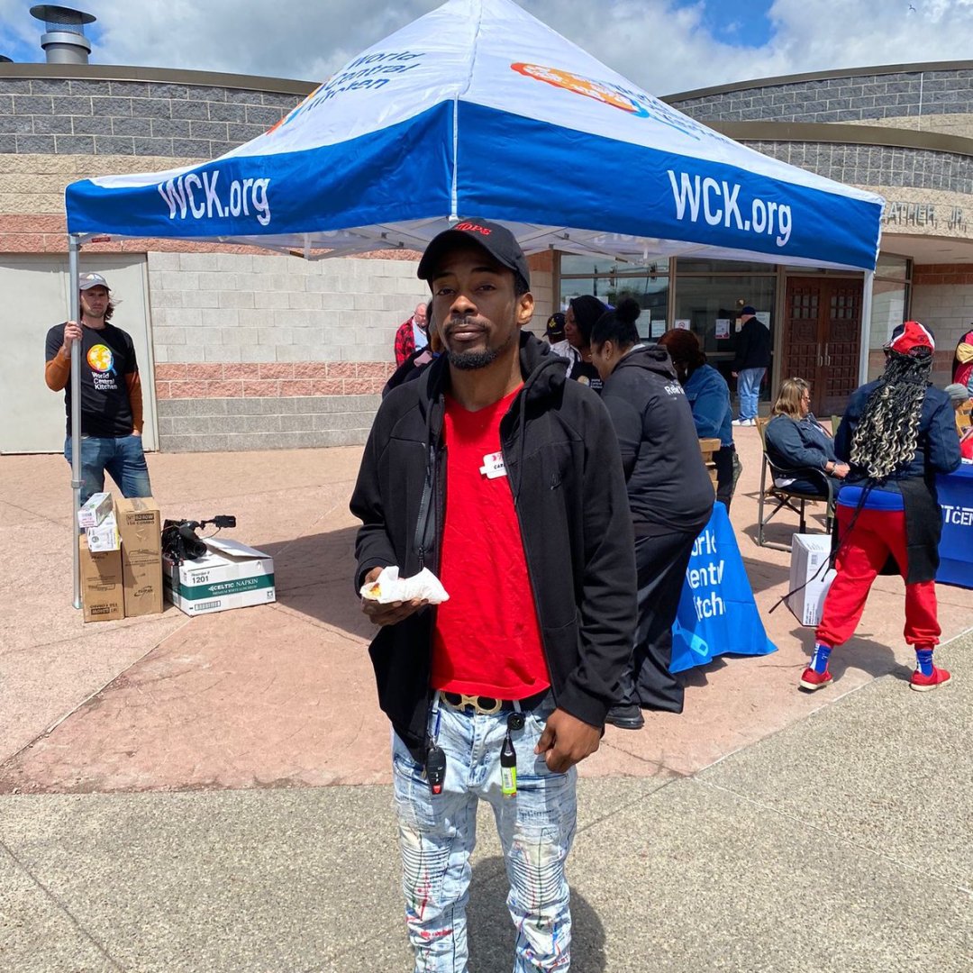 With no grocery stores close by, WCK jumped in to provide apples, oranges, greens, and more. Javon was very excited to see that we were serving fresh fruit alongside hot meals.
