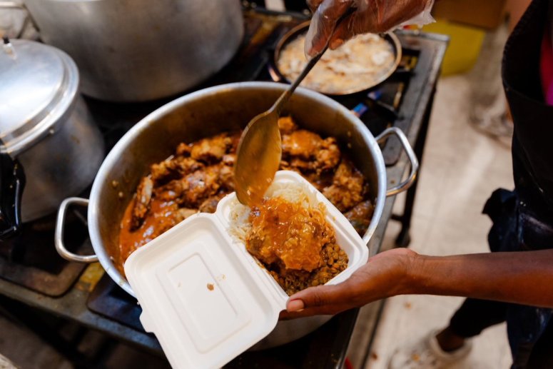 • Canouan, an island on the Grenadines archipelago, suffered extensive damage when Hurricane Beryl hit. Hundreds of people here remain in urgent need of food. WCK is working with local partner Glendin’s Kitchen to provide 1,000 warm meals daily of regional staples like this fish cooked in creole sauce and served over noodles and lentils.