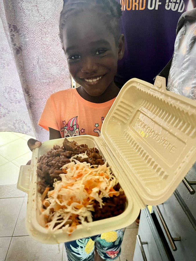 • J’Anya is helping hand out cutlery at WCK’s partner kitchen on Canouan in St. Vincent and the Grenadines. Her mom, Aneka, is the head chef at the kitchen and is working tirelessly to prepare comforting meals for families on the island hit hard by Hurricane Beryl.