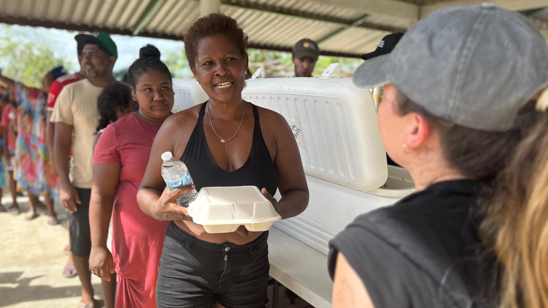 WCK teams in Mexico are reaching isolated communities by all means available. To serve the coastal town of La Grúa in southern Oaxaca, we loaded hot meals onto a boat and crossed the lagoon. We served hearty plates of beef and vegetables to families who lost power during the storm.
