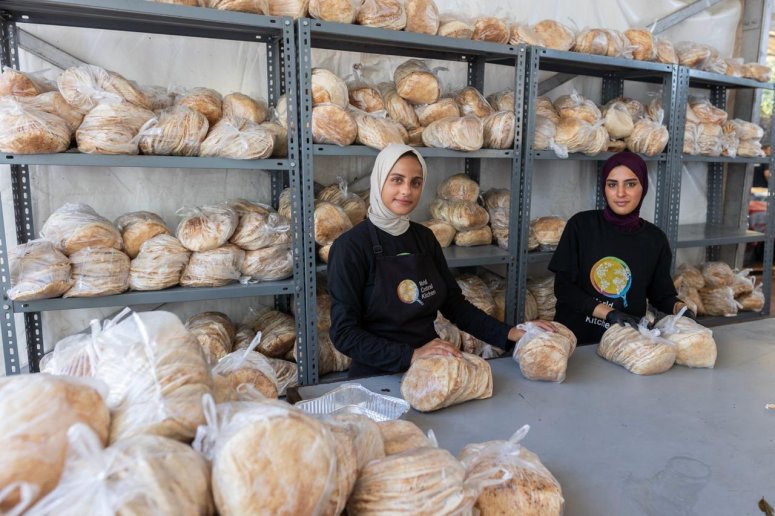 • Hanaa and Maysaa are back at work in Zomi’s Kitchen preparing bread. WCK’s newest Field Kitchen reopened last week after being forced to close for a month due to active conflict in the area. Palestinians living in camps for the displaced in southern Gaza help deliver the traditional bread to their neighbors in hard-to-reach areas.