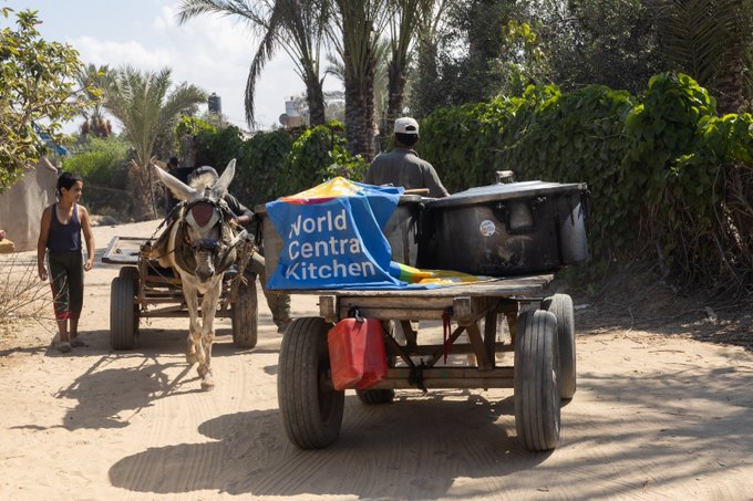 • We are committed to nourishing people by any means necessary. In Gaza, this has meant transporting meals by truck, boat, plane, or even donkeys. One of WCK’s community kitchens near Khan Younis delivers large pots of food to nearly 20 camps of local residents and people displaced from homes elsewhere in Gaza on a daily basis. The kitchen plays a vital role in providing not only hot meals, but also hope for those living through impossible conditions in the camps.