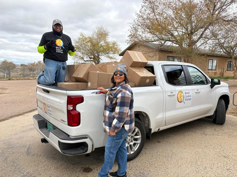 Relying on local leaders to reach families, WCK #ChefsForNavajo teams distributed meal kits to community members impacted by delays to SNAP benefits. Thanks to local community members Ollie and Tonna, who speak Navajo, we reached more than 1,000 people with groceries to cook the meals they love.