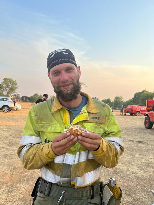 • As wildfires burn through an intense heatwave across Spain, firefighters are working around the clock to put out the flames. To support first responders in Zamora, WCK is on the ground serving sandwiches, coffee, sweets, fruit, gazpacho & cold water. #ChefsForSpain