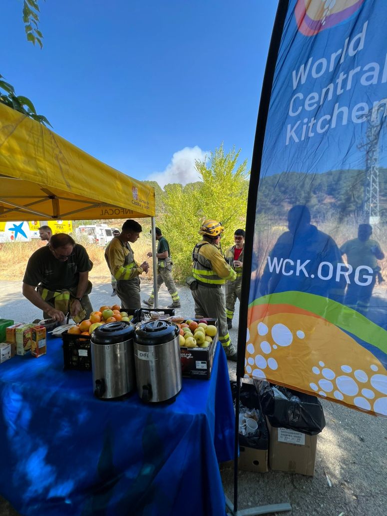• In response to the Quintanilla del Coco wildfire in Burgos 🇪🇸, WCK worked with a local partner to prepare fresh meals served with fruit for first responders battling the blaze. As fires continue to burn amid the extreme heat, we’ll monitor & respond where needed. #ChefsForSpain