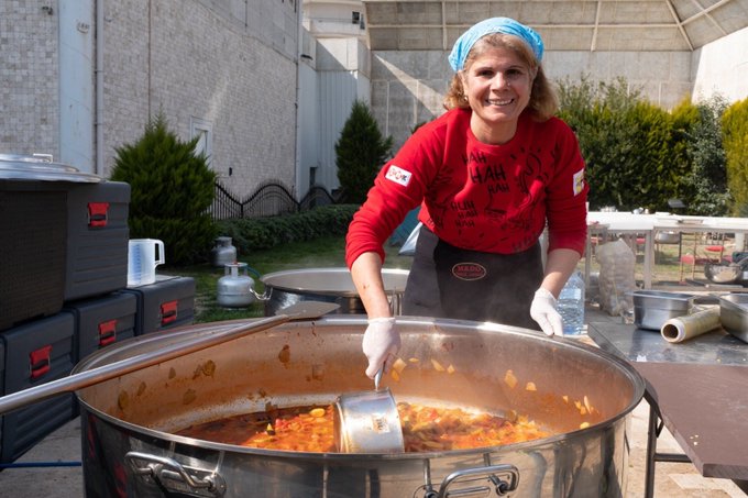 • Hülya is a local chef cooking in our kitchen in Antakya—among the hardest-hit cities in the country. With her children & husband, she managed to evacuate her building moments before it collapsed. Now, she cooks meals for neighbors that also lost their homes. #ChefsForTürkiye