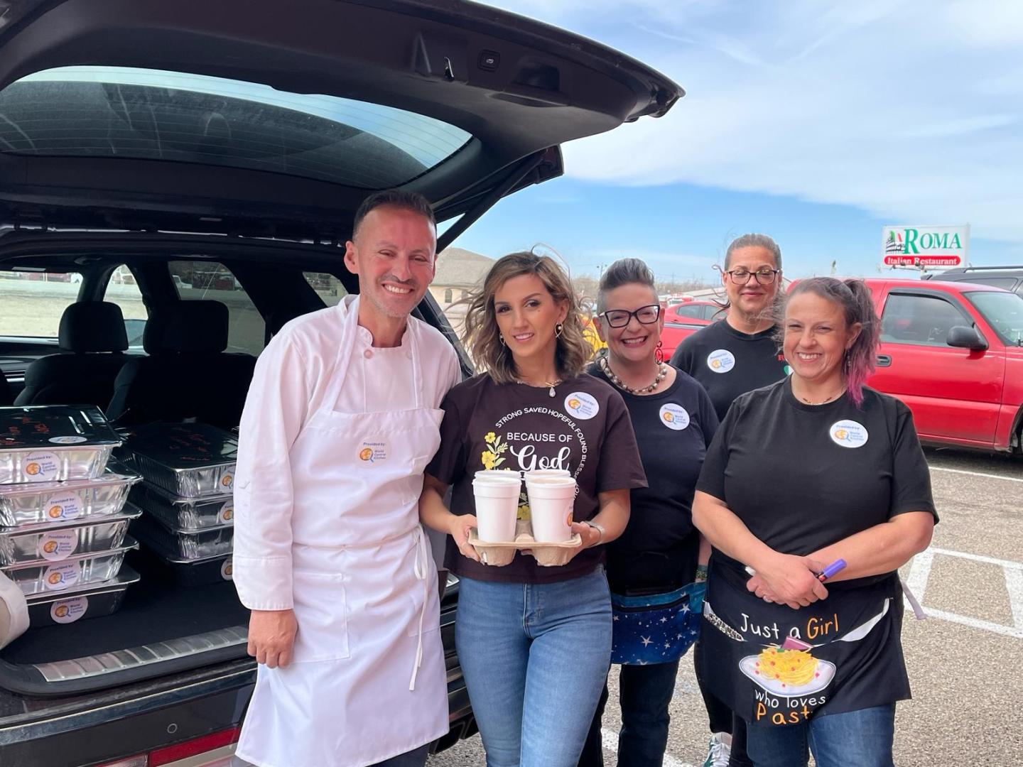 Desa, Bruno, and the team of Roma Italian Restaurant prepared lasagna with salad and garlic bread for people impacted by the wildfires in their community of Borger.