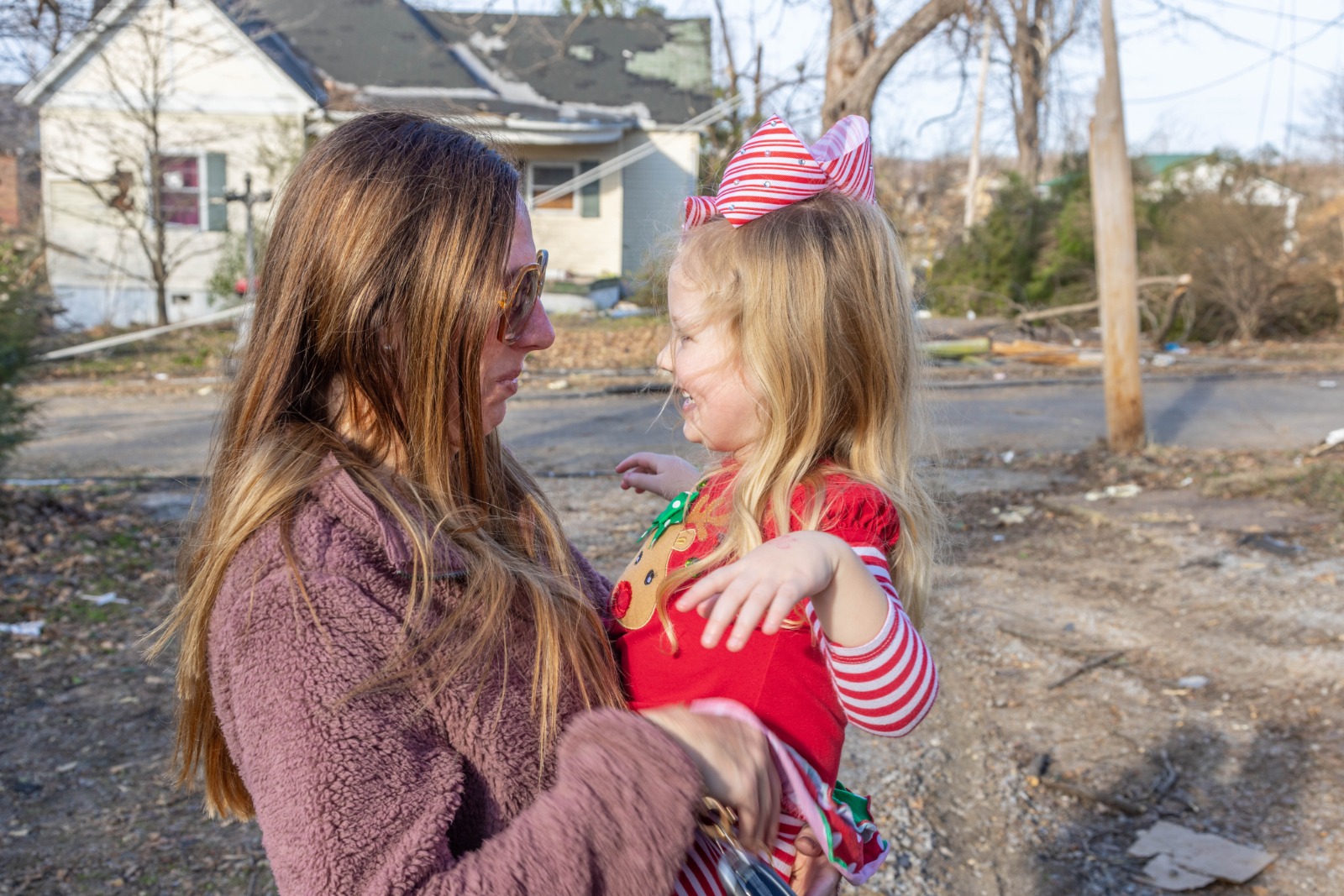 This is Shey & her daughter, Adeline. After the tornado hit Mayfield, Shey rushed to help her grandmother and her cousins who have 11 children between them. The WCK team dropped off 20 meals for Shey to share with her family as they begin to recover.