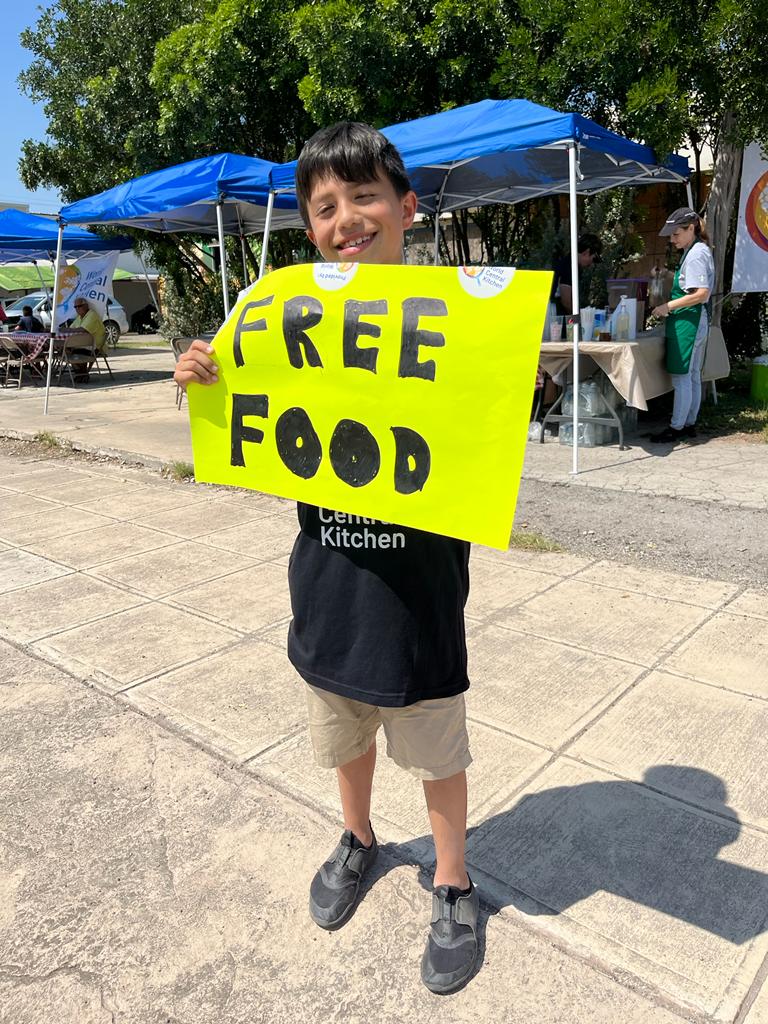 The hot days didn’t stop WCK volunteers from working hard. 10 year-old Vincent, who just finished fourth grade in a nearby town, came by because he wanted to support the Uvalde community. He helped us label items with WCK stickers and spread the word about free meals. Vincent is excited for summer because he will go fishing, to the beach with his grandma, and won’t have to do homework before starting 5th grade.