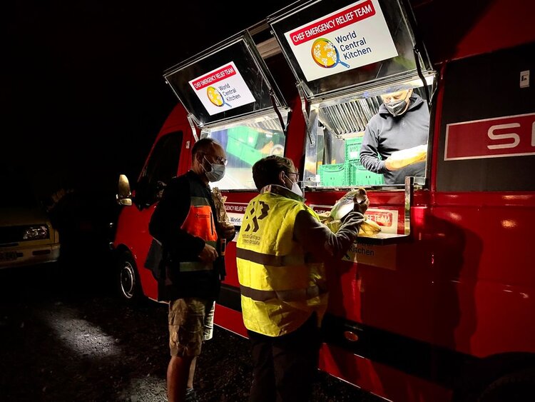 Together with local chefs and volunteers, WCK began cooking comforting meals for evacuees, shelters, and emergency crews. Helping us distribute meals around the island were taxis, Protección Civil, and Correos—Spain’s postal service. With our Relief Truck, we also provided round the clock meals at the 24 hour Emergency Command Center. While the situation has improved, the WCK Relief Team continued providing fresh meals to families unable to return home due to toxic gas levels.