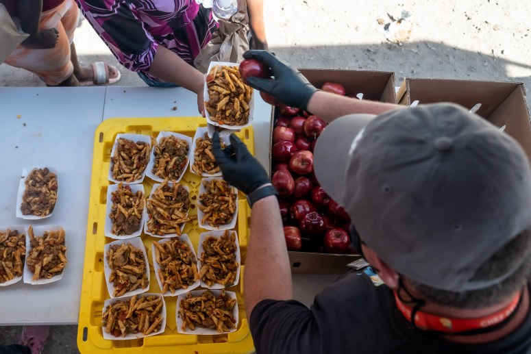 Nearly 16,000 asylum seekers – primarily Haitian families – began sheltering under a bridge in Del Rio, Texas after traveling across the US border from Mexico. Cooking until the camp’s closure, we distributed over 100,000 fresh meals cooked both from our Relief Food Truck and partner restaurants, all served alongside fresh fruit – along with baby food and diapers for families with young children. Throughout the year, WCK has served meals to migrant and refugee families in multiple locations near the southern US border.